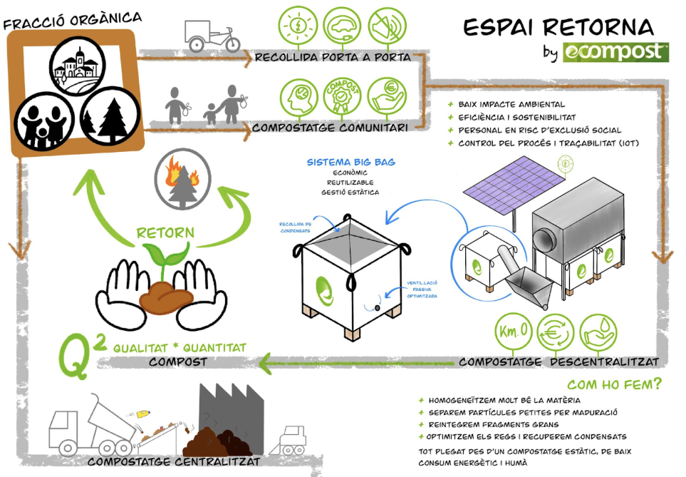 A Ecompost, hem creat un model de gestió de residus orgànics basat en la nostra planta de compostatge descentralitzada, eficient, sostenible i amb un baix impacte ambiental.